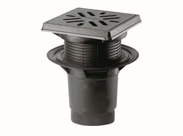 Ablaufstutzen senkrecht, mit Flansch, frostsichere Geruchssperre, herausnehmbarer Sandfangkorb, verdrehbarer und höhenverstellbarer Aufsatz, Polypropylen, hochschlagfest, Belastungsklasse B (bis 12,5 t)