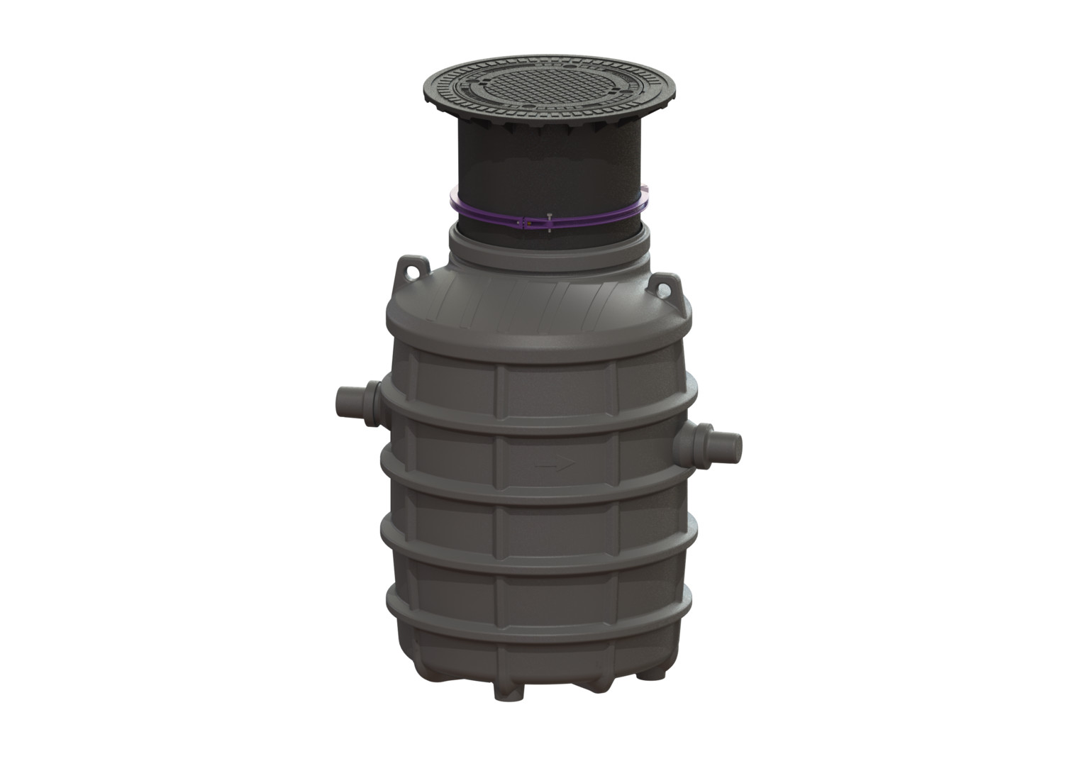 aus Kunststoff, Einbau für frostfreie Tiefe 1200 mm, grundwasserbeständig bis 500 mm über Behältersohle, teleskopisch höhenverstellbares Aufsatzstück aus Kunststoff, Abdeckung nach DIN EN 124 aus Guss (PKW/LKW-befahrbar) geruchsdicht verschlossen, Aushebeschlüssel, Anlage komplett montiert, Zubehör Direktentsorgungsanschluss, Schichtdickenmessgerät für Fette SonicControl für NS 2 und NS 4, Probenahmeeinrichtung, Verlängerungsstück, Pumpstationen