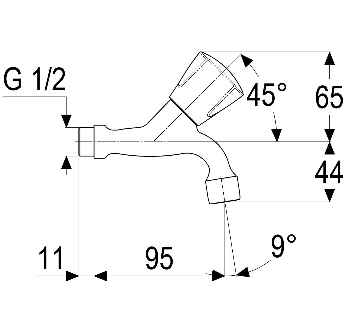 Schulte Wand-Auslaufventil classic-line_2 Ausladung 95mm, 1/2", verchromt, Trianongriff