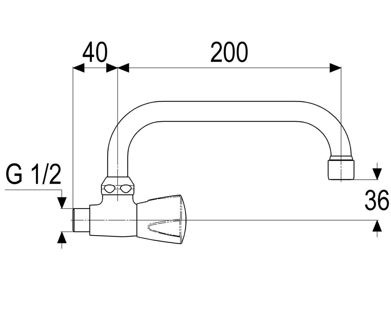 Schulte Wand-Auslaufventil classic-line_2 Ausladung 200mm, 1/2", U-Rohrauslauf, verchromt, Trecorngriff W326813