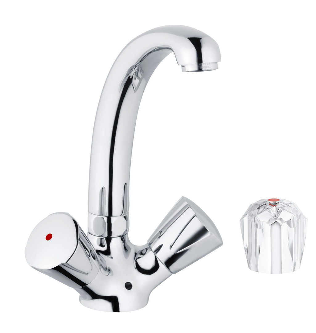 Schulte Waschtisch-Zweigriff-Armatur classic-line_2 ND, Ausladung 120mm, Gussauslauf, Ablaufgarnitur, verchromt, Classicgriff W327116