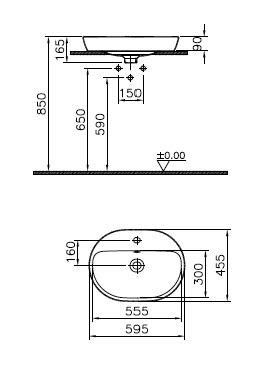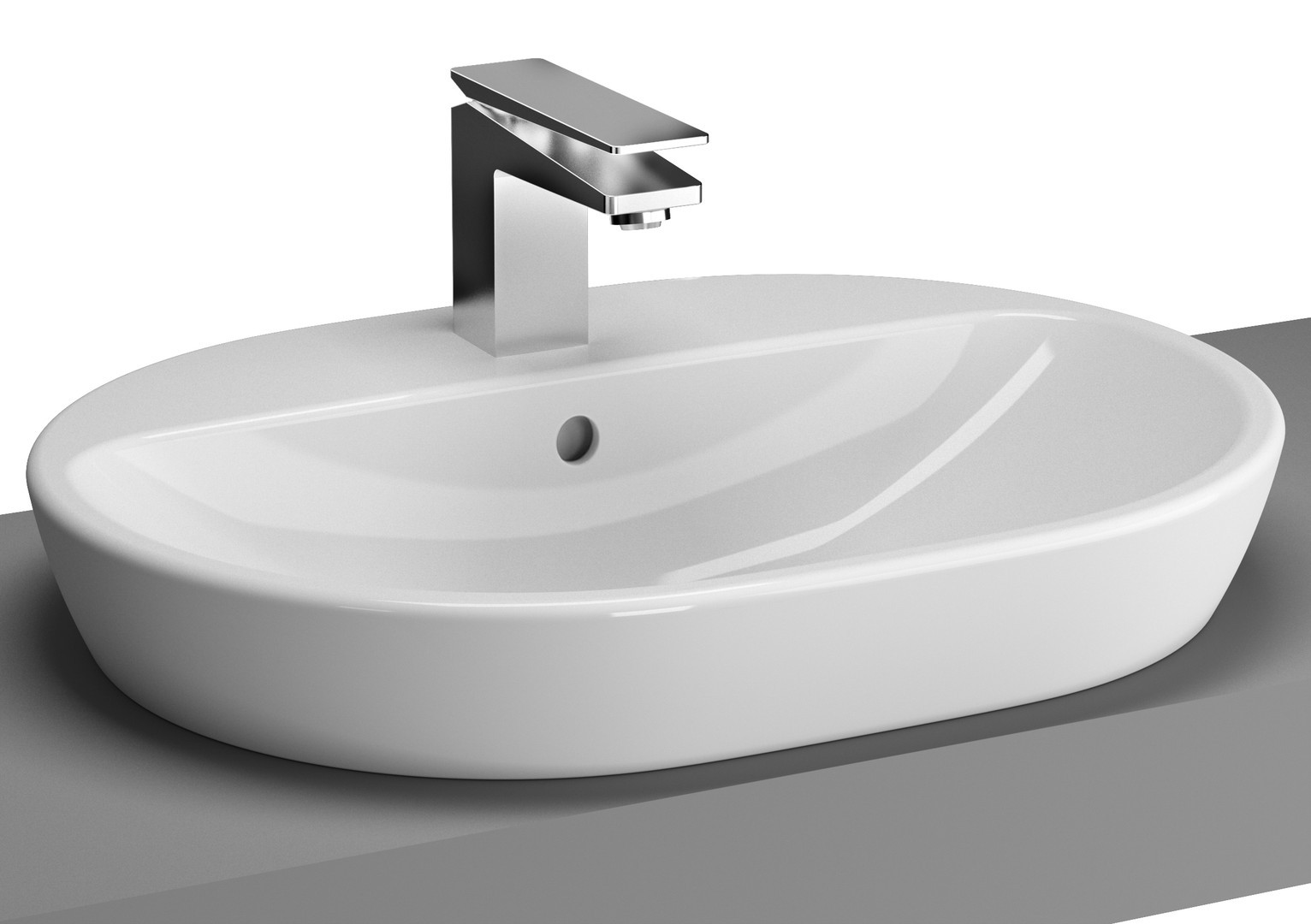 VitrA Bad Aufsatz-Waschtisch Metropole 59,5x45,5cm, oval, 1 Hahnloch mittig, weiß hochglanz, ohne Überlauf W57652