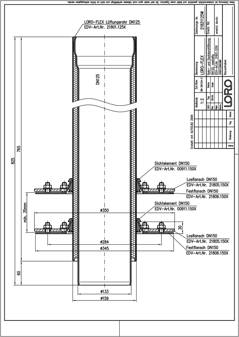 LORO LOROFLEX Flachdachdurchführungen DN 125, zweiteilig