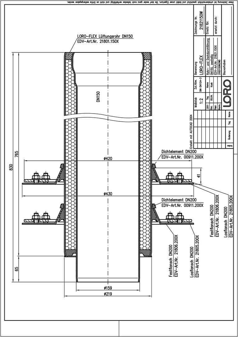 LORO LOROFLEX Flachdachdurchführungen DN 150, zweiteilig