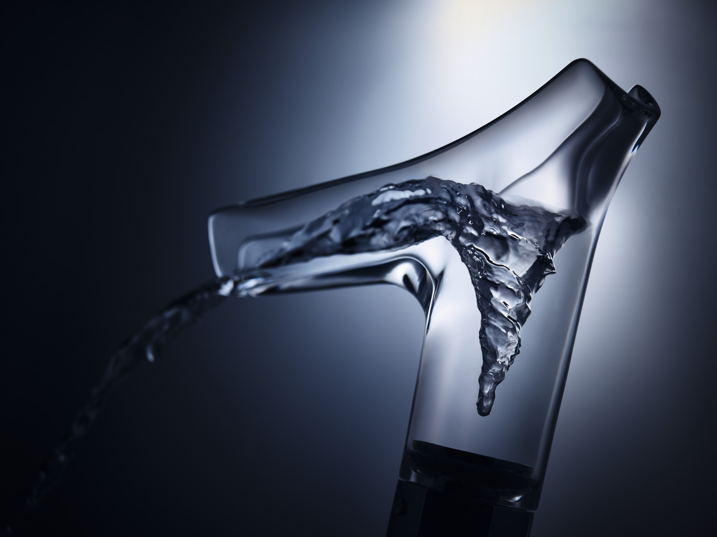 hansgrohe Waschtisch-Einhebelmischer Axor Starck V 140 mit Glasauslauf, unverschließbare Ablaufgarnitur, chrom