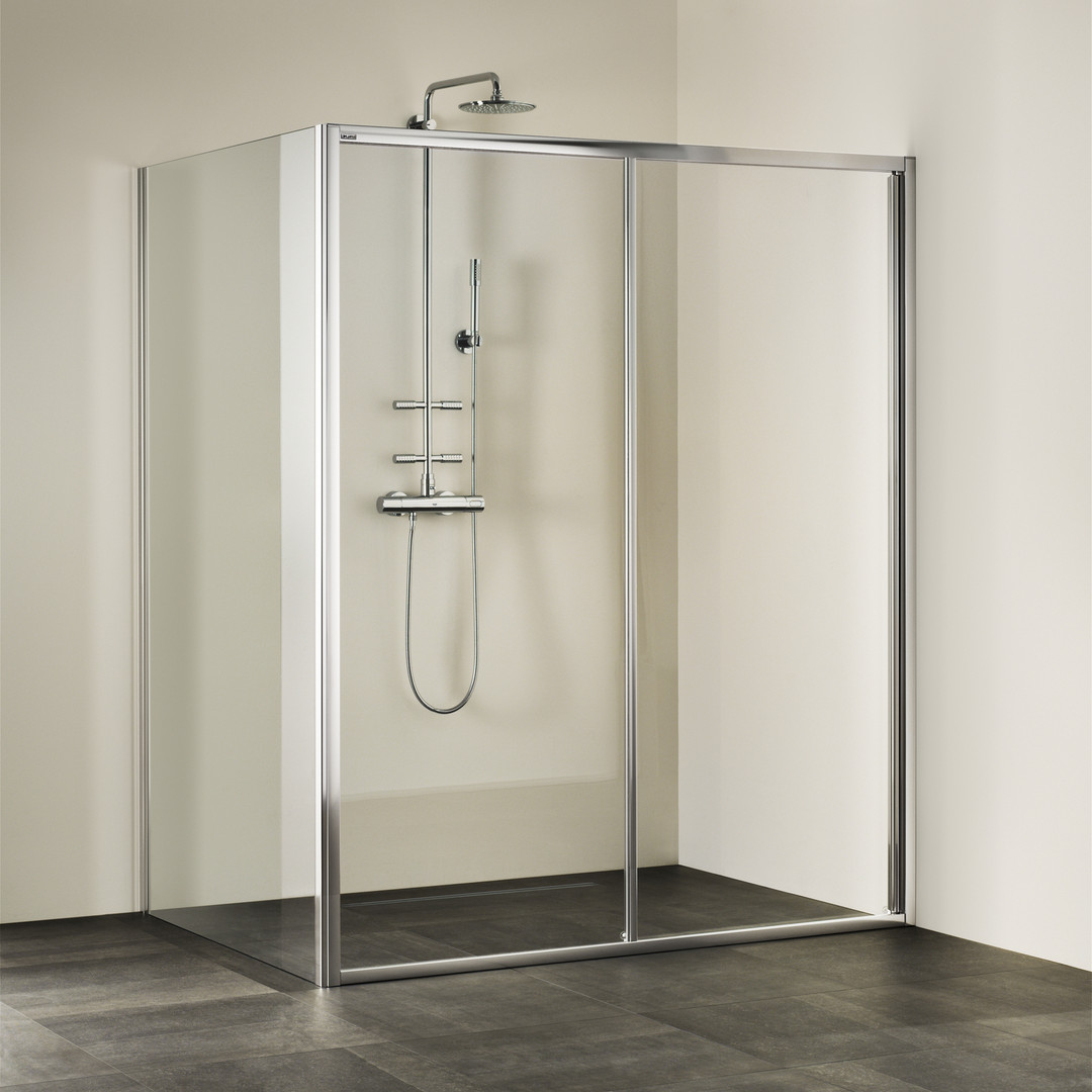 Palme Schiebetür mit Seitenteil Drive 1.0 107,5 x 180 cm, rechts, AK ESG transparent, cenit-chrom, 2-teilig