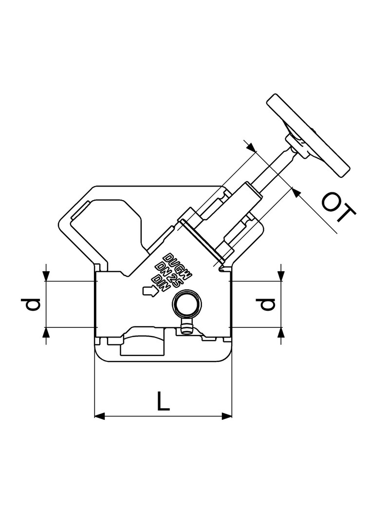 Schlösser Freistromventil DG1510 DN 25, Rp 1, mit Dämmschale, mit Entleerung, steigende Spindel