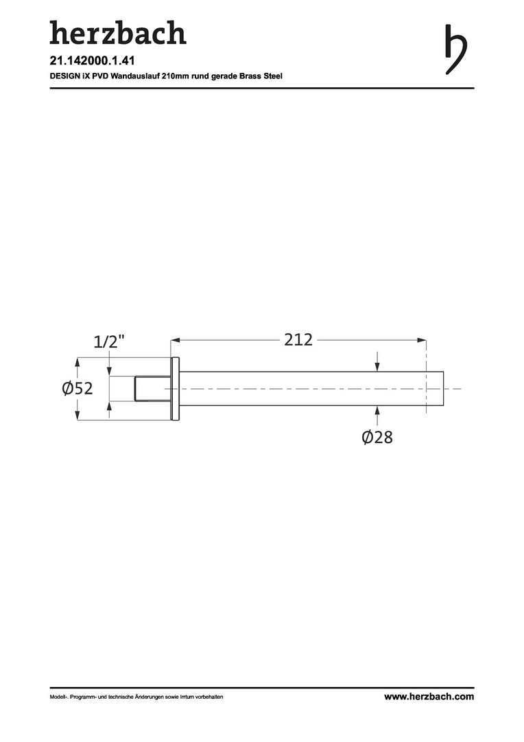 Herzbach Wannen-Wandauslauf Design iX PVD 212 mm, brass steel, 1/2"
