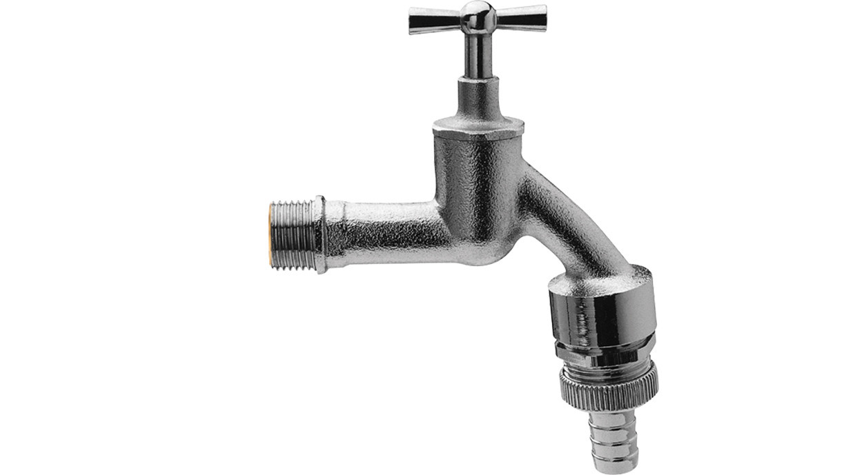 ASW Auslaufventil 1/2", Messing matt verchromt, Rohrbelüfter, Rückflussverhinderer, Schlauchverschraubung W534118