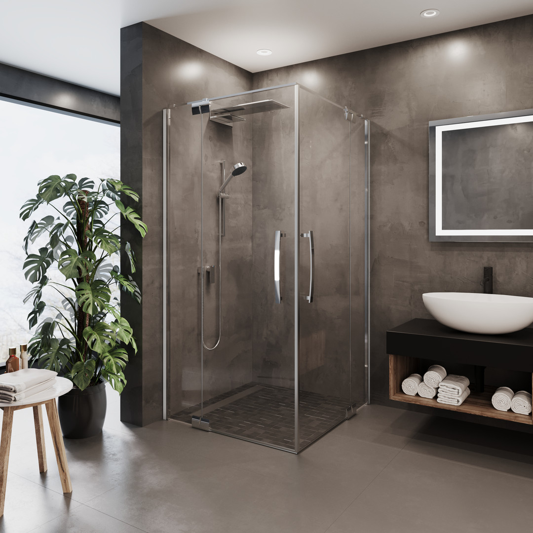 Palme Eckeinstieg Aprejo Vario 73,5 x 200 cm, rechts, ESG transparent, cenit-chrom, 2-teilig