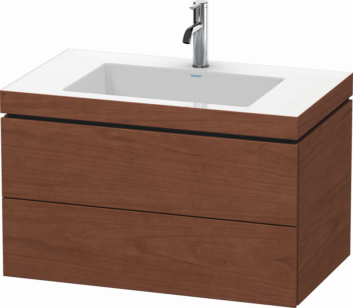 Duravit Waschtisch-Unterschrank c-bonded L-Cube 80 x 48 cm, 1 Hahnloch, amerikanischer nussbaum, 2 Schubkästen, wandhängend