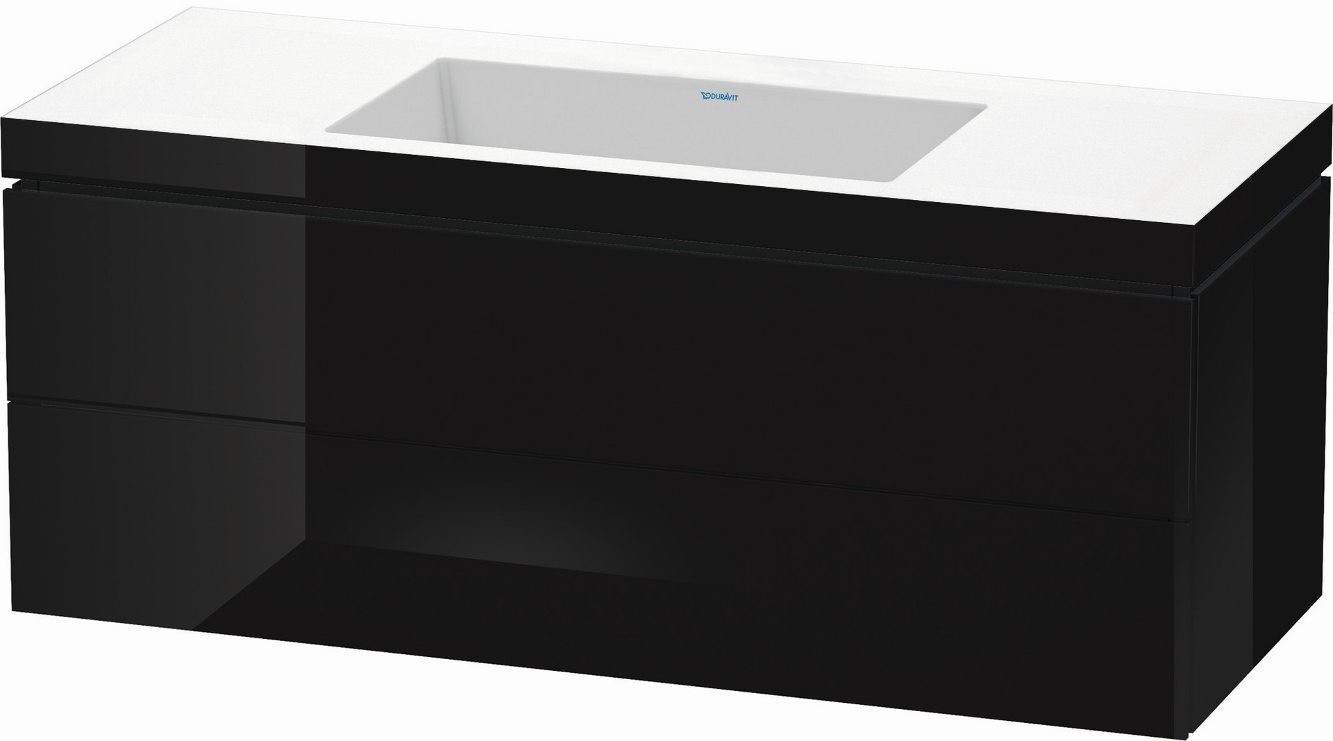 Duravit Waschtisch-Unterschrank c-bonded L-Cube 120 x 48 cm, ohne Hahnloch, schwarz hochglanz, 2 Schubkästen, wandhängend