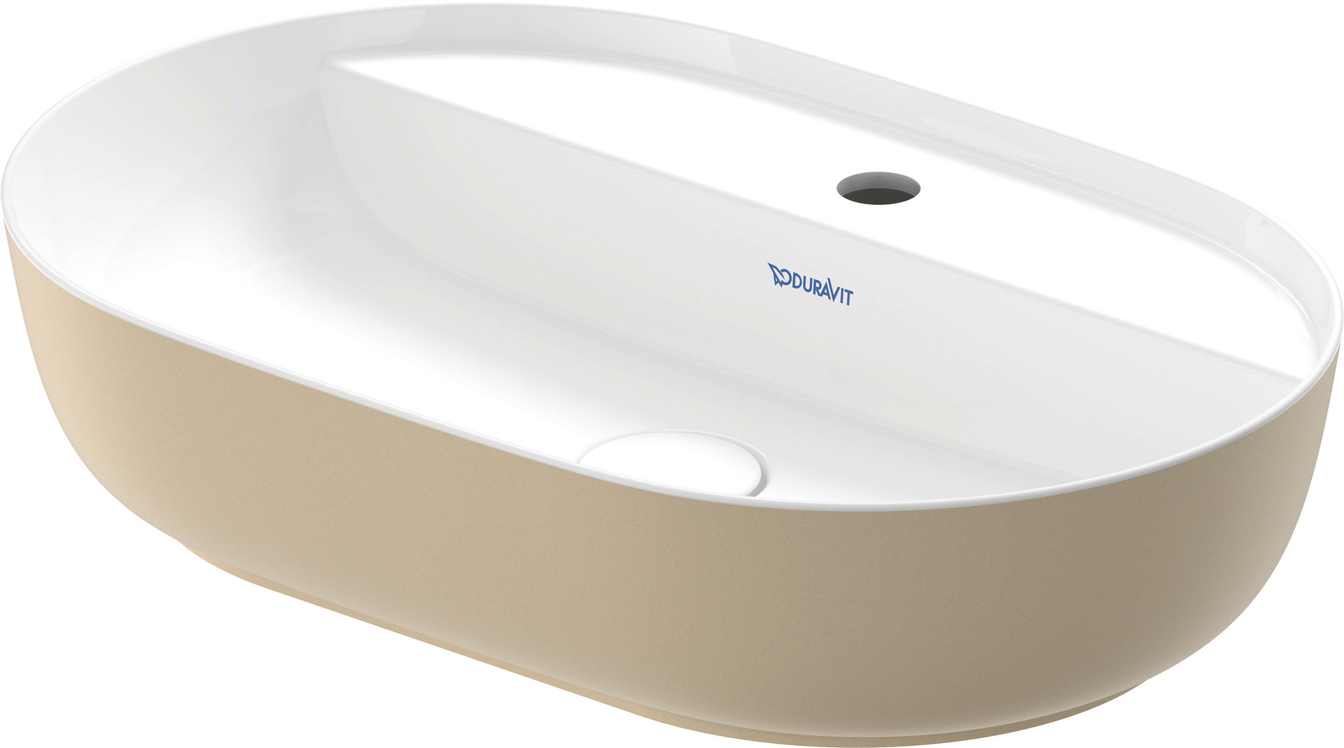 Duravit Aufsatz-Waschtisch Luv 60x40cm, geschliffen, mit Hahnloch, ohne Überlauf, mit Hahnlochbank, weiß/sand seidenmatt
