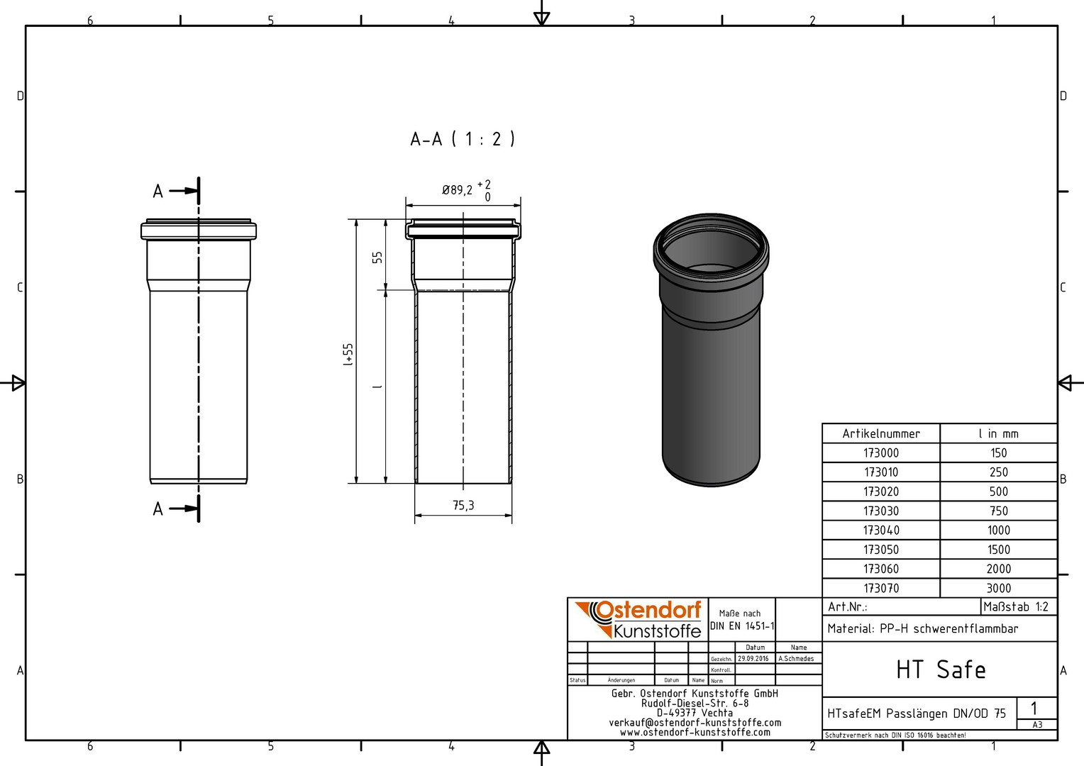 Ostendorf HTsafe Rohr EM DN/OD 75, 250 mm