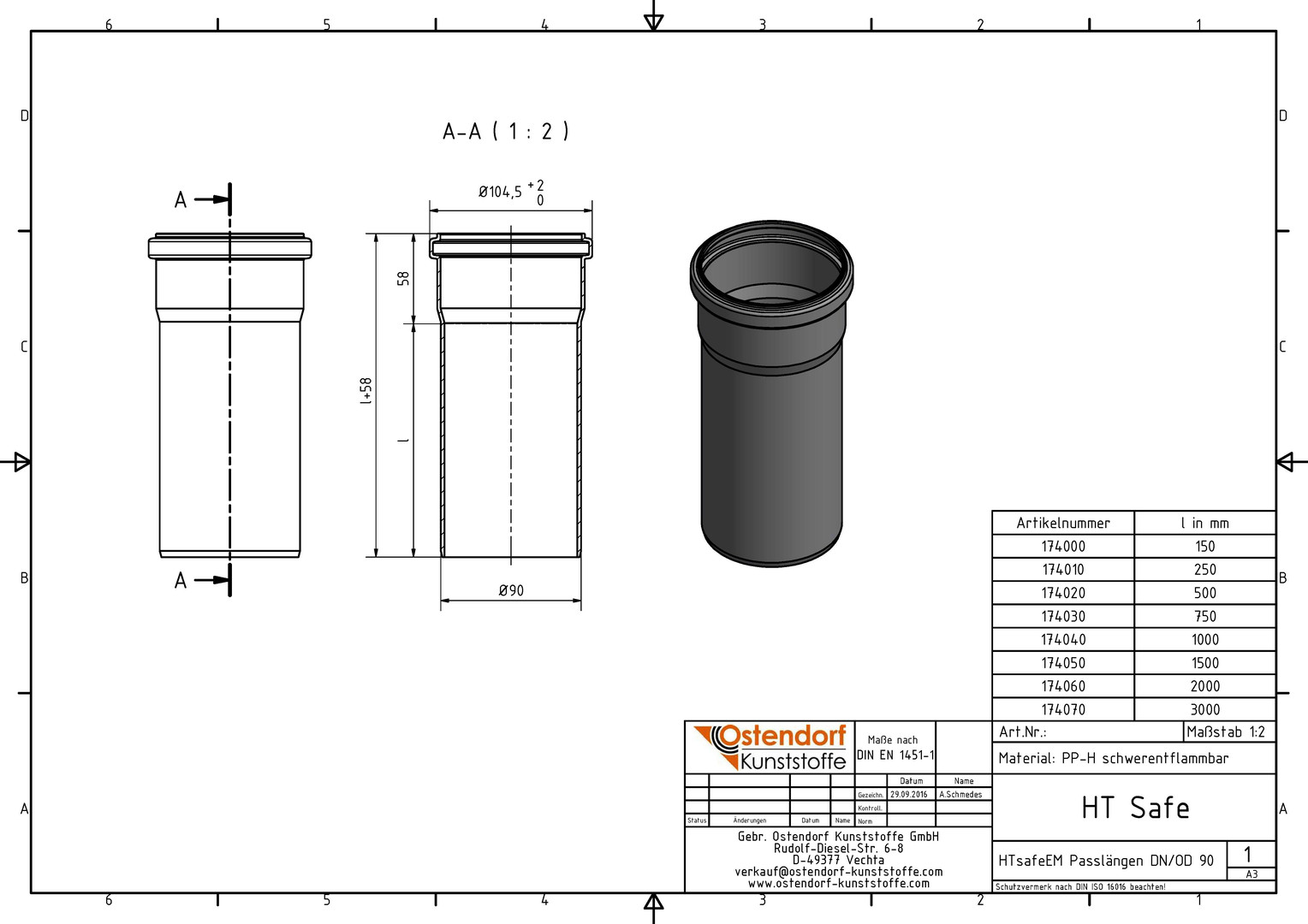 Ostendorf HTsafe Rohr EM DN/OD 90, 3000 mm