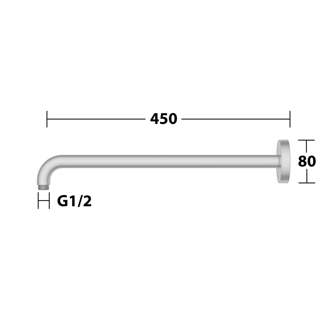 KEUCO Brausearm Ausladung 450 mm, aluminium-finish, Rosette rund, Wandmontage