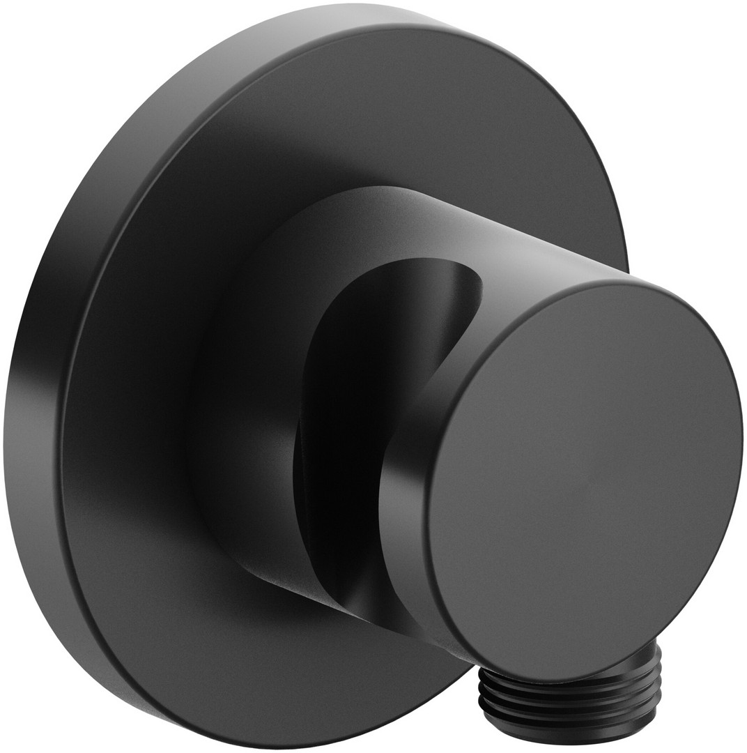KEUCO Schlauchanschluss Rosette rund, mit Brausehalter, schwarzchrom gebürstet W971806