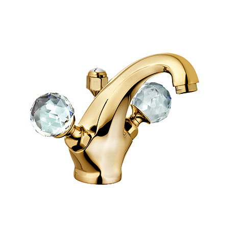 KLUDI 1926 Waschtisch-Zweigriff-Armatur Kristallgriffe, mit Ablaufgarnitur, vergoldet 23 kt W324716