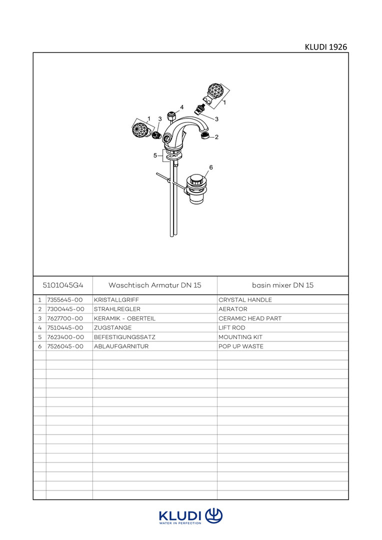 KLUDI 1926 Waschtisch-Zweigriff-Armatur Kristallgriffe, mit Ablaufgarnitur, chrom W324714