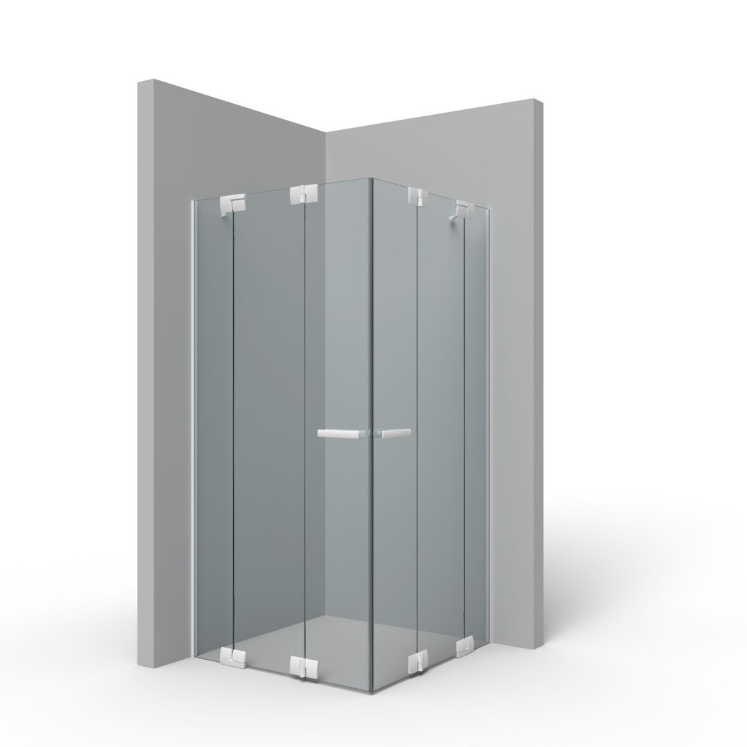Palme Falt-Eckeinstieg Aprejo Pro 110 x 200 cm, links, AK ESG transparent, schneeweiß, 2-teilig, an Fixteil