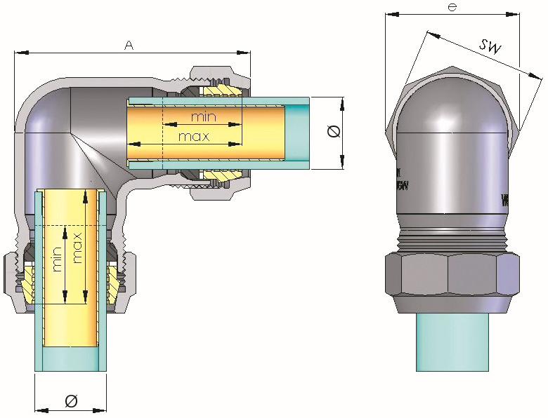 Gebo Verschraubung WO Serie 156 32 x 32 mm, Winkel, mit EPDM-Dichtung, PE/PE-Übergang