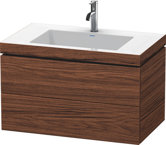 Duravit Waschtisch-Unterschrank c-bonded L-Cube 80 x 48 cm, 1 Hahnloch, nussbaum dunkel, 2 Schubkästen, wandhängend