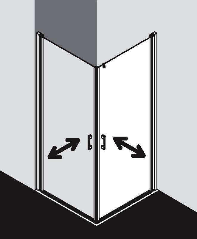 kompletter Eckeinstieg besteht aus LI 1ER Eckeinstieg Halbteil rechts und LI 1EL Eckeinstieg Halbteil links, Halbteile unterschiedlicher Breite beliebig kombinierbar, Kombination mit LI 2CR/L Eckeinstieg 2-teilig (Pendel-Falttüren) Halbteil/LI EPR/L Eckeinstieg 2-teilig (Pendeltüren mit Festfeldern) Halbteil möglich, teilgerahmter Eckeinstieg mit zwei Glasflügeln, nach innen und außen öffnend, Verglasung mit 5 mm Einscheiben-Sicherheitsglas nach DIN EN 12150, Profile aus eloxiertem Aluminium, Griffe aus Metall, Verstellmöglichkeit im Wandprofil 25 mm, Profilgelenk mit Hebe-Senk-Mechanismus, durchgehende Magnetleisten und Dichtprofile, waagerechte Dichtleiste in Dachrinnenform, mit Bodenschwelle (Höhe 6 mm) oder ohne Bodenschwelle (bodenfrei) installierbar, Konstruktionsbedingt ist keine absolute Abdichtung erreichbar, iIm Lieferumfang enthalten: Befestigungsmaterial, ein transparenter Handtuchhalter-Haken, geprüft nach DIN EN 14428 (CE) und PPP 53005 (TÜV/GS), 20 Jahre Ersatzteil-Nachkaufsicherheit nach Auslauf des Modells, alle Maßangaben bei lotgerechten Wänden, Schräge waagerecht max. 5 mm, Verbreiterung durch Stockverbreiterung ZDSV SV1 LI....K