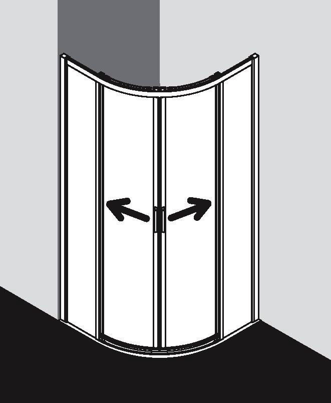 teilgerahmte Viertelkreis-Duschkabine mit zwei Gleittürsegmenten und zwei Festfeldern, Verglasung mit 4 mm Einscheiben-Sicherheitsglas nach DIN EN 12150, Profile aus eloxiertem Aluminium, Griffe aus Metall, Verstellmöglichkeit im Wandprofil 25 mm, Gleittürsegmente zur Reinigung nach innen schwenkbar, kugelgelagerte Laufrollen, durchgehende Magnetleisten und Dichtprofile, waagerechte Dichtleiste in Dachrinnenform, mit Bodenschwelle (Höhe 6 mm), oder ohne Bodenschwelle (bodenfrei) installierbar, Konstruktionsbedingt ist keine absolute Abdichtung erreichbar, im Lieferumfang enthalten: Befestigungsmaterial, geprüft nach DIN EN 14428 (CE) und PPP 53005 (TÜV/GS), 20 Jahre Ersatzteil-Nachkaufsicherheit nach Auslauf des Modells, Montage: Duschkabinen sind zur Montage auf Duschwanne bzw. Duschplatz bestimmt. Bei anderweitiger Verwendung ist ein gleichwertiger Duschbereich (Abdichtung zum Estrich, Gefälle, …) sicherzustellen, bei Montage auf Fuge ist bauseits sicherzustellen, dass es sich um eine wartungsfreie wasserdichte Verfugung handelt, bei bodenfreier und bodenferner Montage sind bauseits Maßnahmen gegen die Rutschgefahr vor der Duschkabine zu treffen