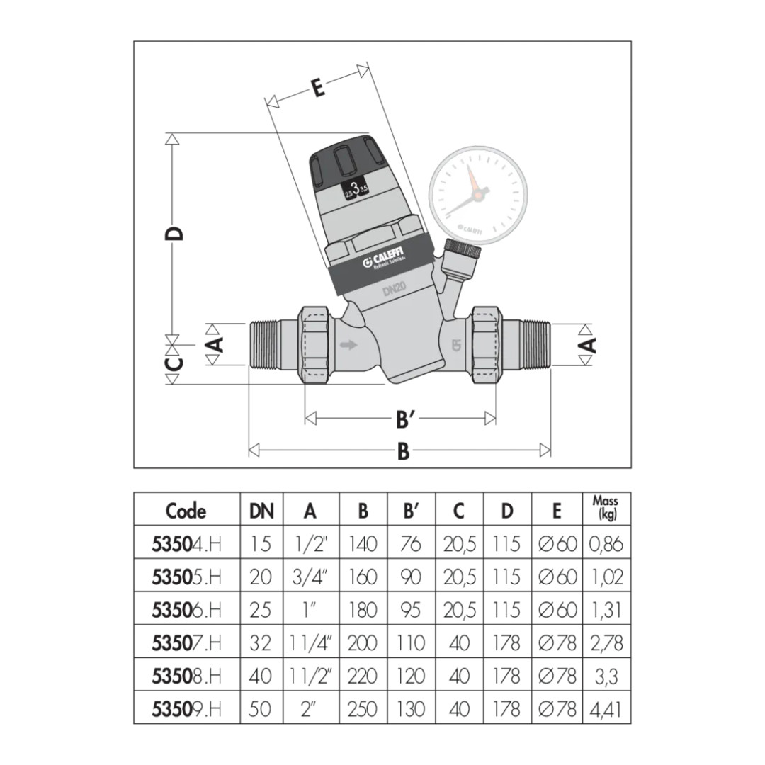 Caleffi Druckminderer 1 1/4" mit Manometer 0-10 bar, max. 80 GradC, 1-6 bar W541384