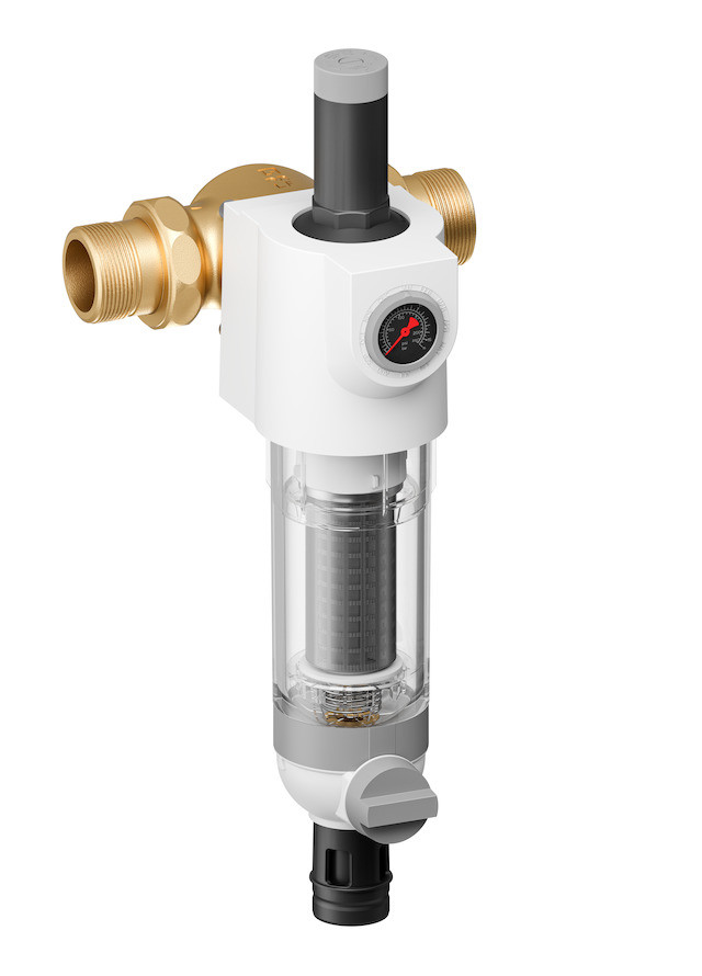 rückspülbarer Feinfilter und Druckminderer in einem Gerät integriert, ununterbrochene Sicherung der Wasserversorgung mit gefiltertem Wasser, der Feinfilter verhindert das Einspülen von Fremdpartikeln und reduziert so die Korrosionswahrscheinlichkeit, der Druckminderer vermeidet Druckschäden und senkt den Wasserverbrauch, speziell für den Einbau in Trinkwasser-Installation geeignet in denen ein Druckminderer benötigt wird, Material bleifrei (Bleigehalt aller Materialien weniger als 0,1 %), integrierter Druckminderer mit entlastetem Einsitzventil, Vordruckkompensation - schwankende Vordrücke haben keinen Einfluss auf den Hinterdruck, auch während der Ausspülung Versorgung mit gefiltertem Wasser, Rückspülsystem für Reinigen des Filters bei gleichzeitig geringem Wasserverbrauch, Rückspülautomatik mit ISO-Flansch-Anschluss nachrüstbar, Filtertasse aus stoßfestem Kunststoff ermöglicht eine visuelle Kontrolle der Filterverschmutzung, Filtereinsatz und komplette Filtertasse austauschbar, ACS-zertifiziert, alle Materialien gemäß UBA KTW, vom TÜV LGA als geräuscharm zertifiziert - Gruppe 1 ohne Einschränkungen, Zertifizierungen DVGW (Zulassung für alle Filter mit 100 µm Filterfeinheit und drehbarem Anschlussstück), Medium Trinkwasser, Filtereinheit 100 µm, max. Vordruck 16/12 bar, Druck-Einstellbereich 1,5-6 bar, Mediumstemperatur 5-30 °C, Einbaulage horizontal oder vertikal