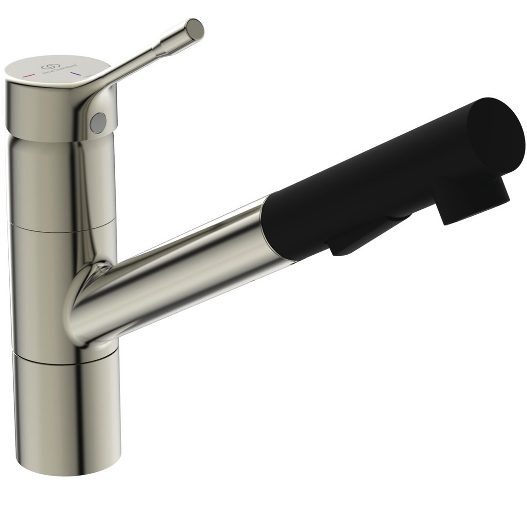 Ideal-Standard Spültisch-Einhebelmischer CeraLook hoch angesetzter Auslauf, 2-Funktionshandbrause, Ausladung 233mm, Edelstahloptik