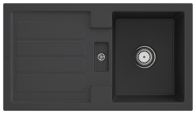 V&B Spüle Flavia 50 mit Ablaufgarnitur, rund mit Handbetätigung, graphit CeramicPlus