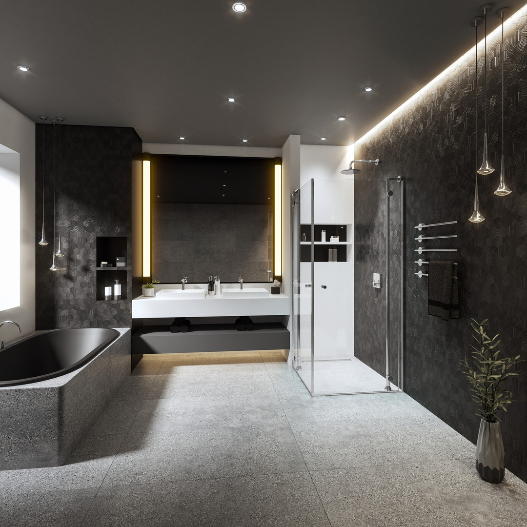 Befestigung innen, Glas 8 mm ESG transparent, Standardhöhe bis 2000 mm bzw. plus 55 mm Verstrebung, Tür öffnet nach innen und außen, mit flächenbündigen Beschlägen, Kombination mit TUBE Accessoires möglich, Montage auf Fliesenboden oder auf Tube Duschwanne, PALM.free, PALM.fix, PALM.lift, PALM.pro,PALM.invisible, PALM.isi-clean, optional PALM.nano, PALM.care