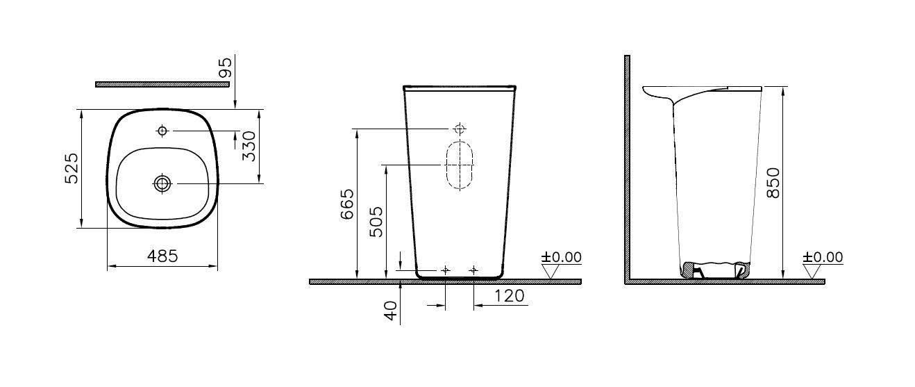 VitrA Bad Waschtisch Plural 48,5x52,5x85cm, bodenstehend, ohne Überlauf, 1 Hahnloch mittig, Tonerde matt W58616