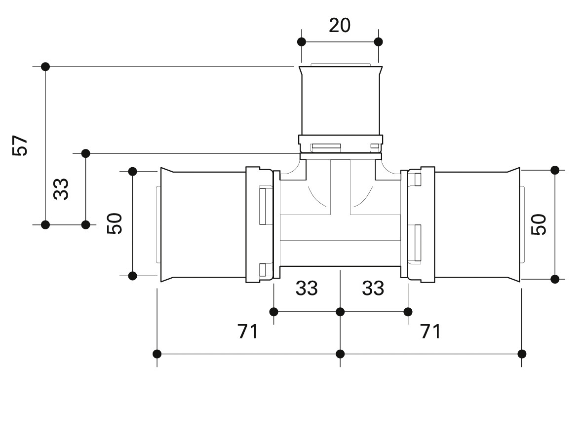 Fränkische T-Stück alpex L 50 x 20 x 50 mm, PPSU, reduziert