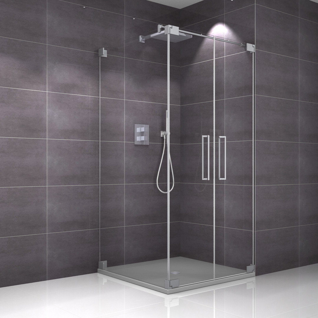 auf Duschwanne, nur mit Pendeltür 2-teilig kombinierbar, Glas 6 mm ESG, Standardhöhe 200 cm plus 3 cm Rundrohrbügel Ø 1,4 cm, PALM.free, PALM.fix, PALM.pro, PALM.isi-clean, optional PALM.nano, PALM.care, punktuelle Wandbefestigung mittels Beschlägen, kostenlose Naturmaßabnahme erforderlich