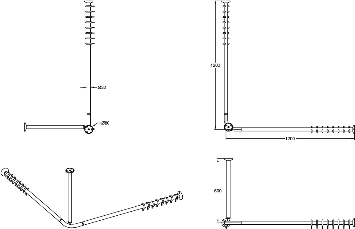 aus Aluminium mit Pulverbeschichtung, ohne Vorhang, Stangen sind kürzbar