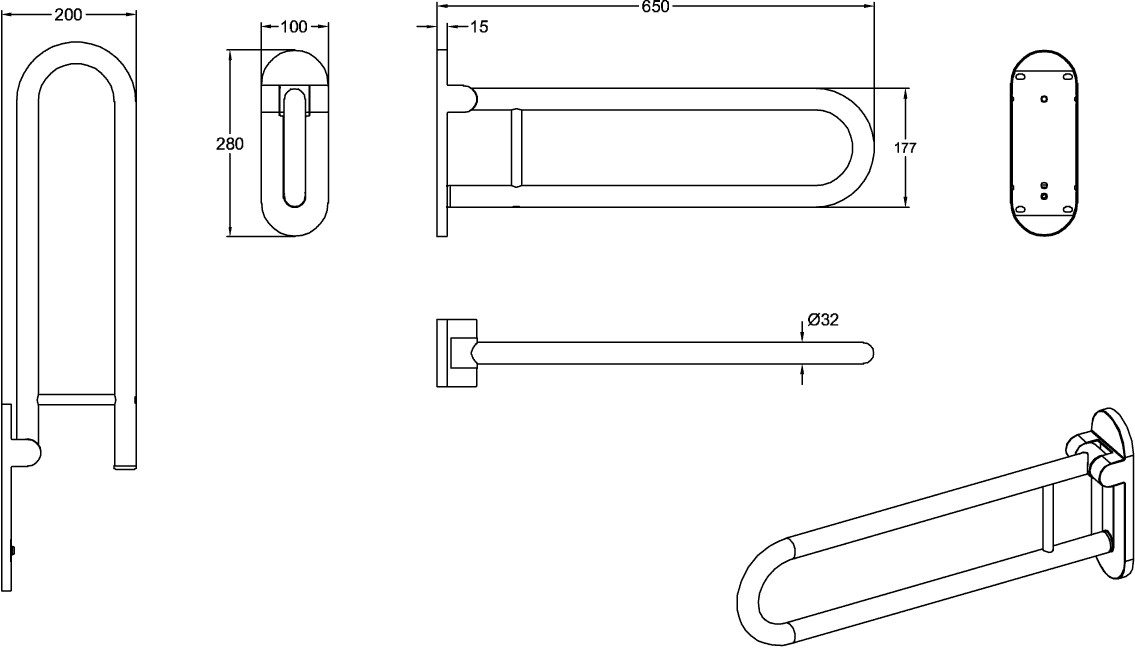 aus Aluminium mit Pulverbeschichtung, komplett mit Standardbefestigungsmaterial, maximale Belastbarkeit laut TÜV 130 kg, erfüllt die Anforderungen nach ÖNORM B1600/1601, DIN 18040 und SIA 500