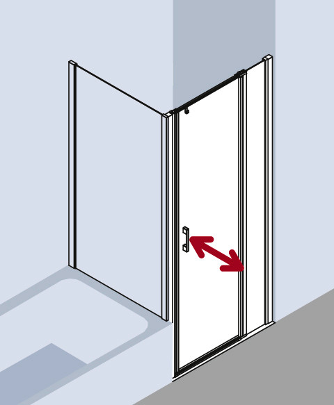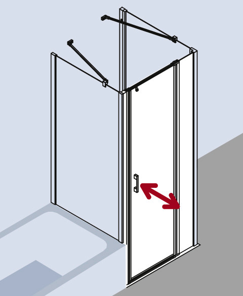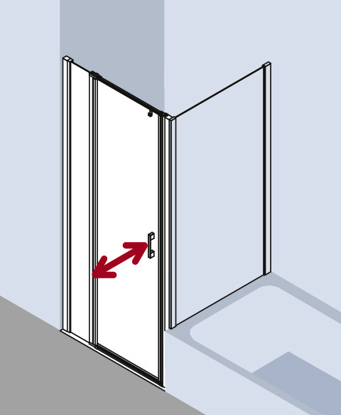 zum Einbau in einer Nische und zur Konbination mit LI TWD Seitenwand/LI TVD Seitenwand verkürzt auf Badewanne, teilgerahmt, mit einem Glasflügel-nach innen und außen öffnend, mit einem Festfeld, mit Zugstab und Stabisierung (innen), ohne Zugstab installierbar, Nische/Ecke ohne Zugstab mit LI TWD und zusätzlicher Liga-Stabilisierung (innen) ZDSS VSS LI, Glasstärke 5 mm, Profile aus Aluminium, Griffe und Gelenke aus Metall, bei Oberfläche silber mattglanz Griffe, Gelenke und Anschlüsse für Zugstab und Bodenschwelle in Chrom, Verstellmöglichkeit je Wandprofil 25 mm, Gelenk mit Hebe-Senk-Mechanismus, durchgehende Magnetleisten und Dichtprofile, waagerechte Dichtleiste in Dachrinnenform, mit 6 mm Bodenschwelle oder ohne Bodenschwelle (bodenfrei) installierbar, mit Befestigungsmaterial und transparentem Handtuchhalter-Haken, geprüft nach DIN EN 14428 (CE) und PPP 53005 (TÜV/GS), die waagerechte Schräge darf max. 5 mm betragen