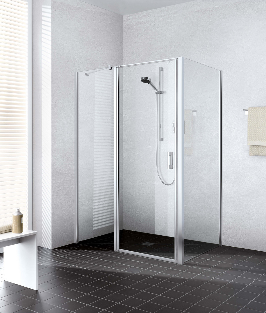 Kermi Wake Up Pendeltür mit Festfeld für Seitenwand silber/hochglanz, 93 x 200 cm, rechts, ESG klar, auf Duschplatz