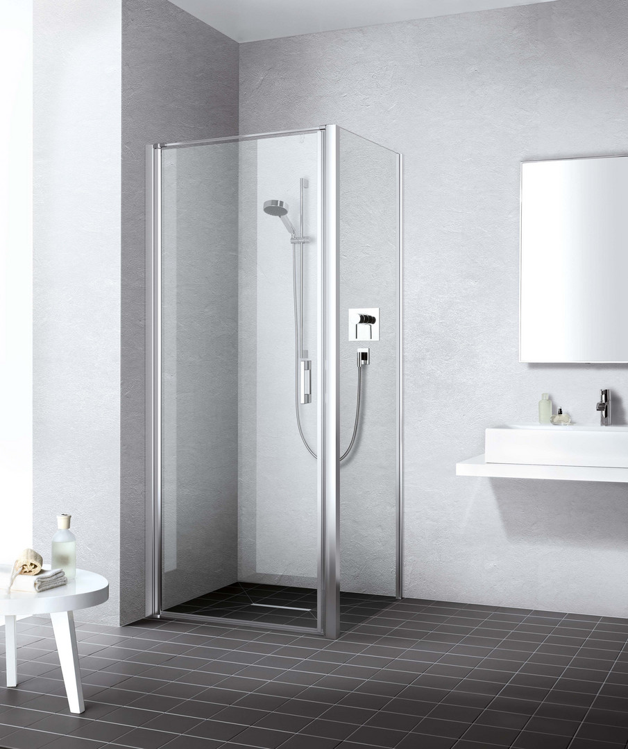 Kermi Wake Up Pendeltür für Seitenwand silber/hochglanz, 93 x 200 cm, rechts, ESG klar, auf Duschplatz W224863
