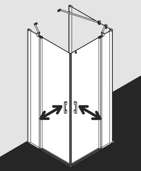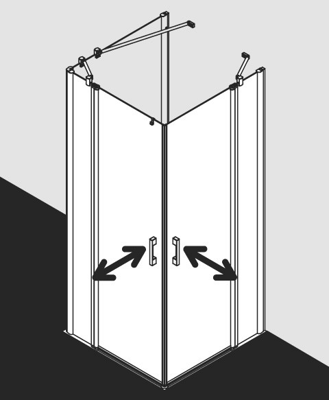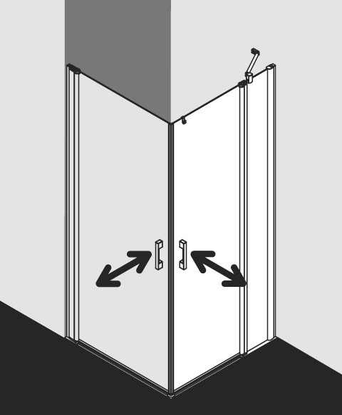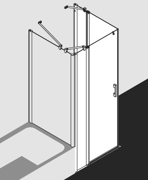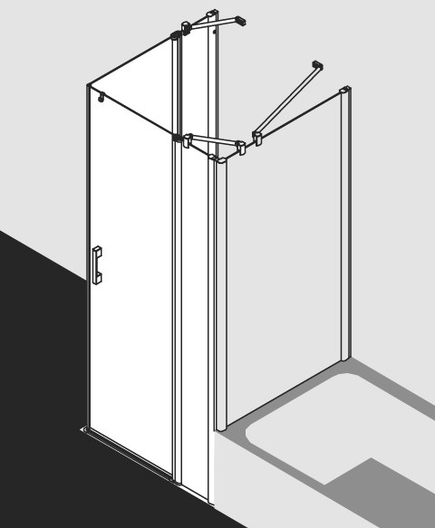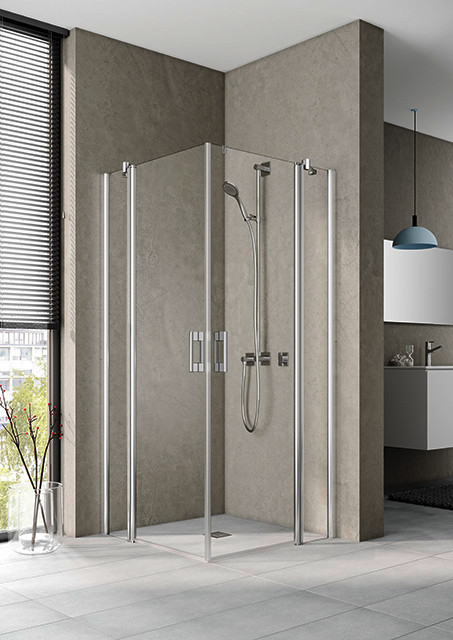 Kermi X-Like Pendeltür-Eckeinstiegshälfte 2-tlg. auf Duschwanne 83 x 200 cm, ESG klar Clean, silber hochglanz, rechts