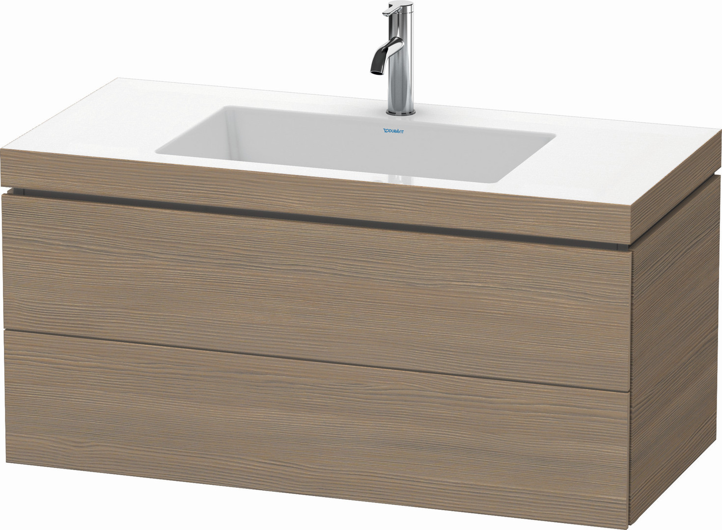 Duravit Waschtisch-Unterschrank c-bonded L-Cube 100 x 48 cm, 1 Hahnloch, Eiche terra, 2 Schubkästen, wandhängend