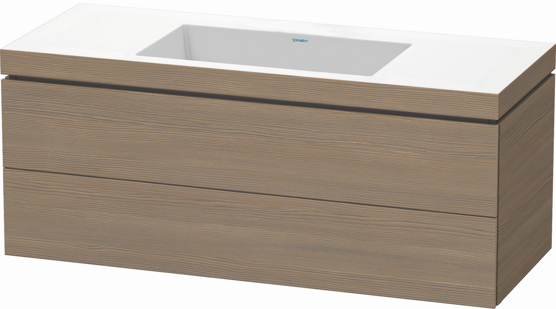 Duravit Waschtisch-Unterschrank c-bonded L-Cube 120 x 48 cm, ohne Hahnloch, Eiche terra, 2 Schubkästen, wandhängend