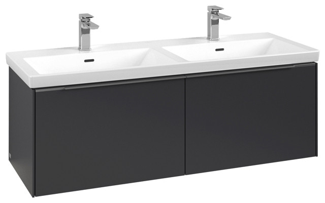 V&B Waschtisch-Unterschrank Subway 3.0 127,2x42,9x47,8cm, mit LED/Griff Aluminium glänzend, graphite