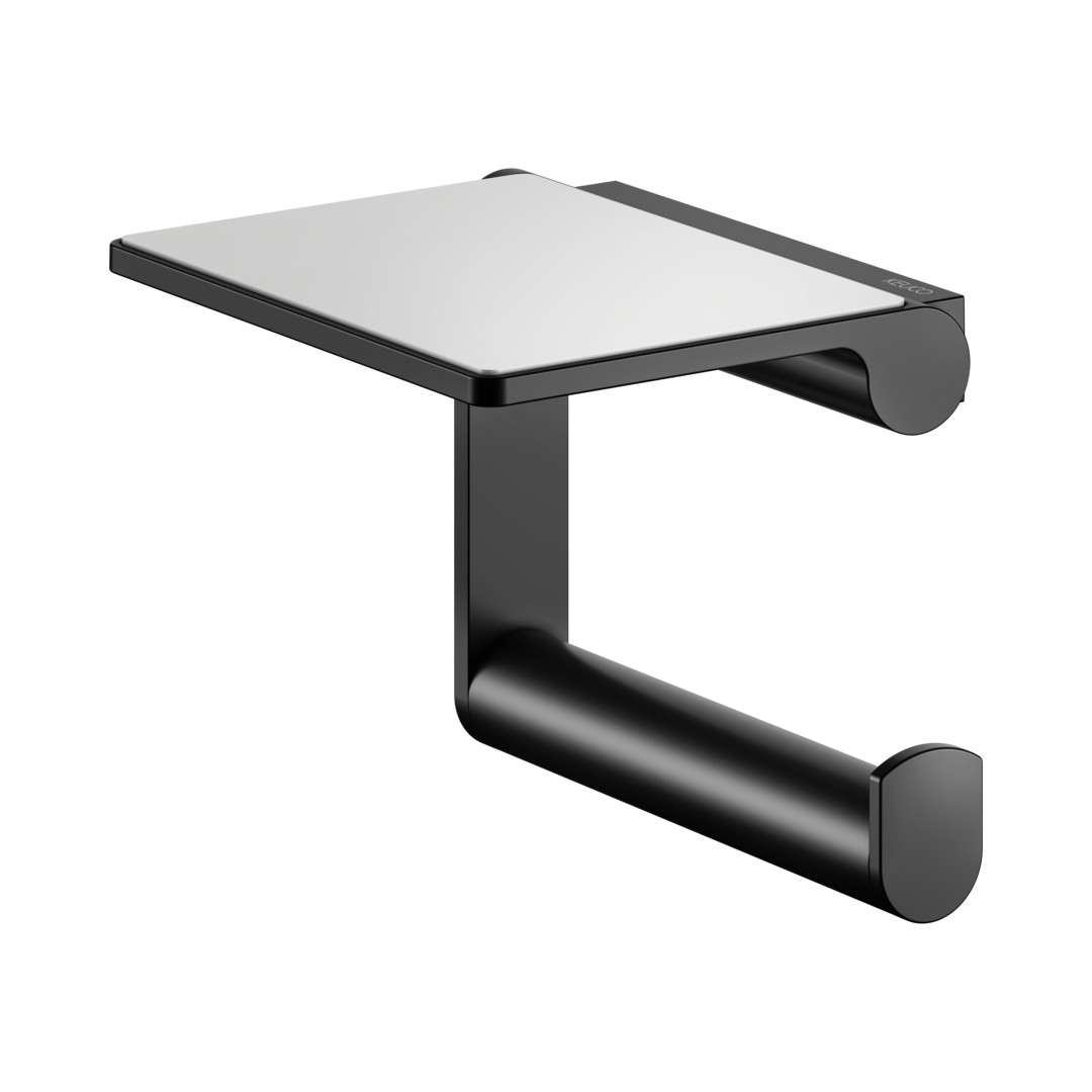 KEUCO Toilettenpapierhalter Plan mit Ablage, offen, schwenkbar, verchromt / schwarz W908097