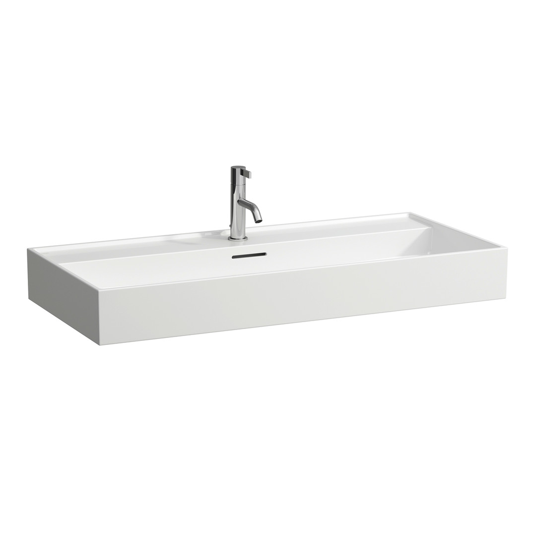 Laufen Aufsatz-Waschtisch KARTELL 100x46cm, Unterseite geschliffen, mit Überlauf, 1 Hahnloch, weiß matt W52828