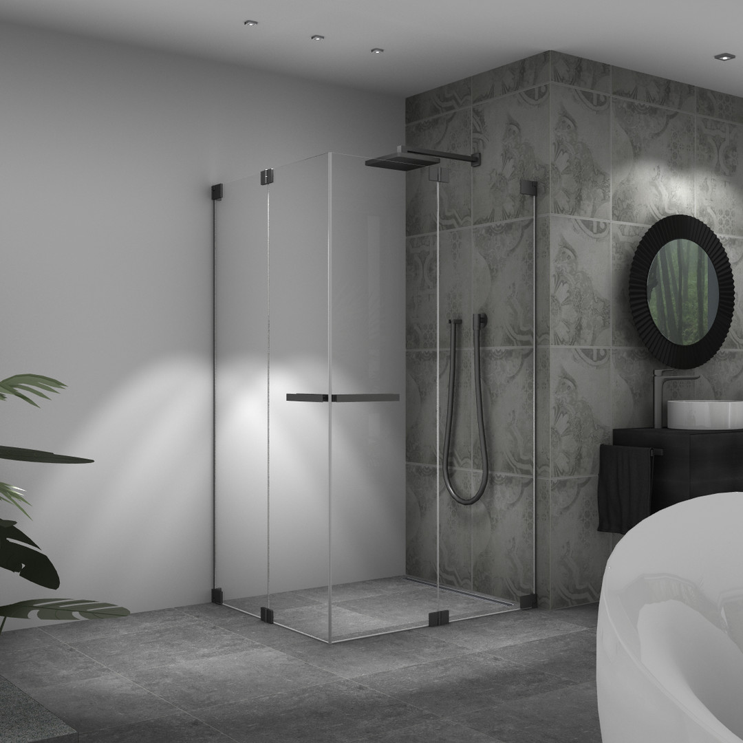 Palme Falt-Eckeinstieg Avito Zero 75 x 200 cm, rechts, ESG transparent, schwarz, 2-teilig