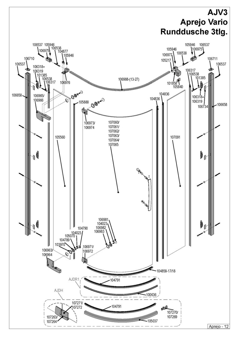Palme Viertelkreis-Drehtür Aprejo Vario 78,5/78,5 x 200 cm, links, ESG transparent, schwarz, 3-teilig