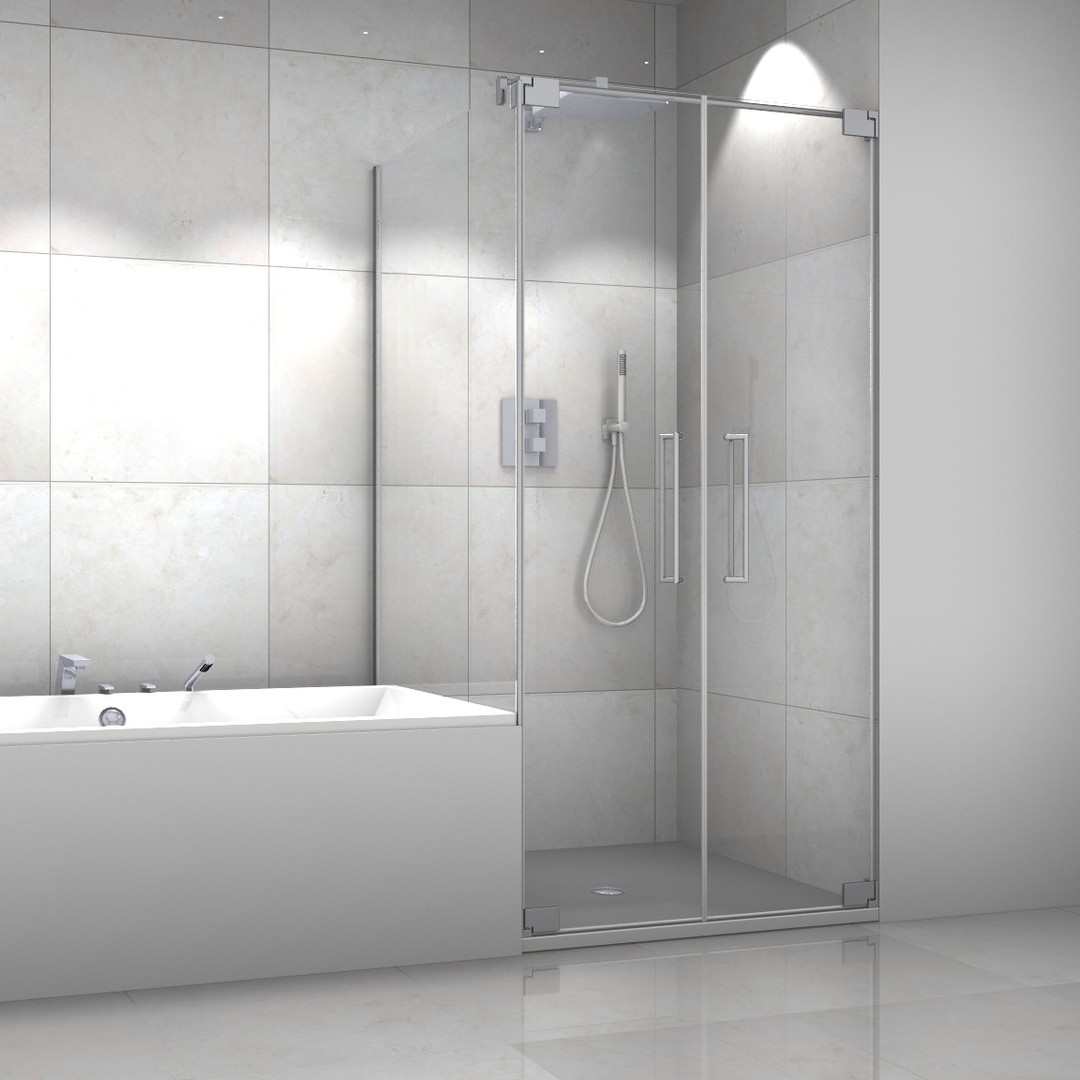 zu Pendeltür 1-teilig, Pendeltür an Fixteil, Falttür 2-teilig (nicht zu Pendeltür 2-teilig), Glas 8 mm ESG, Standardhöhe bis 200 cm plus 3 cm Rundrohrbügel Ø 1,4 cm, PALM.free, PALM.fix, PALM.pro, PALM.isi-clean, optional PALM.nano, PALM.care, schmales Wandprofil zur Montage auf oder in Fliese, kostenlose Naturmaßabnahme erforderlich